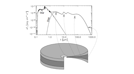 Fig. 2.40 Demonstration of how the spectrum from a star+disc system is generated#
