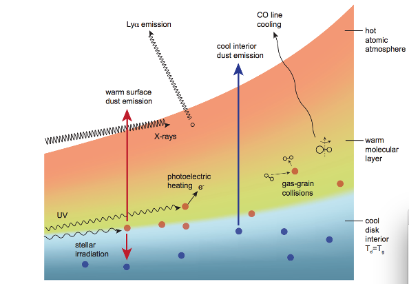 Fig. 2.44 Schematic of heating and cooling processes in protoplanetary discs#
