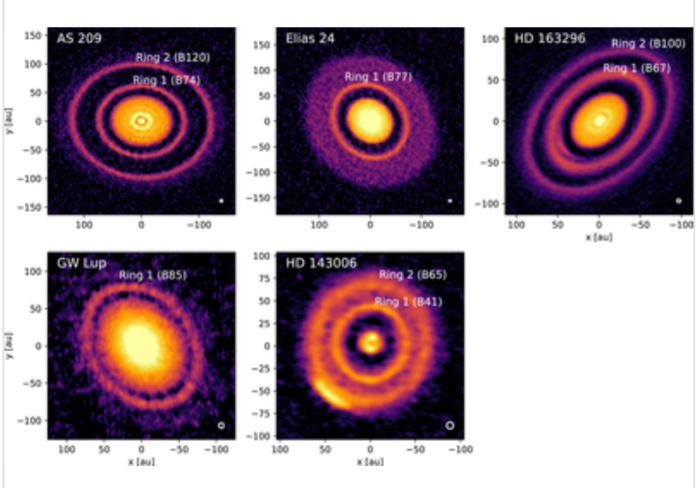 Fig. 2.49 ALMA images of discs with ring-like structures which may be interpreted as result from dust traps associated with pressure maxima (Credit: C. Dullemond).#