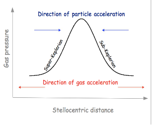 The reason that the drag of gas on dust grains has such a significant effect on their dynamics is because the gas itself is not quite rotating at a Keplerian speed. This is because gas experiences an acceleration due to radial pressure gradients and this affects radial force balance :