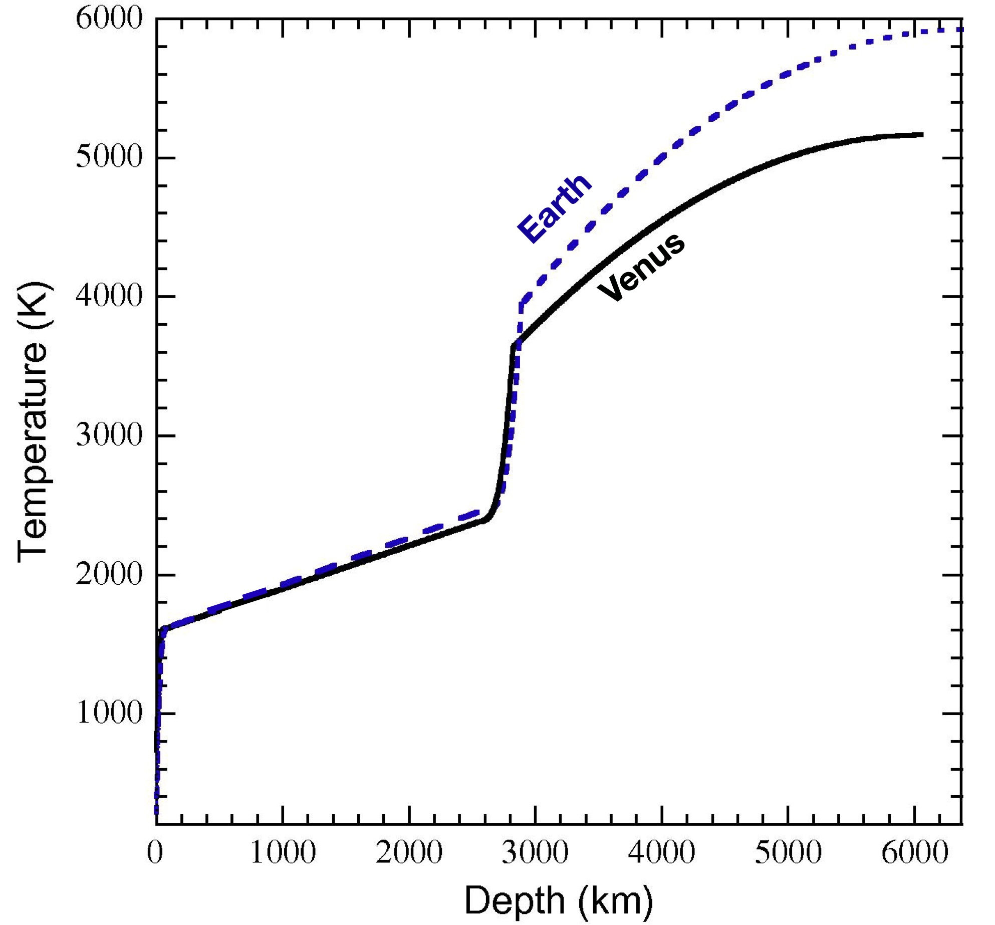 Fig. 3.84 Temperature Inside Venus and Earth. From Fig. 7 of Aitta (2012).#