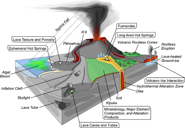 Fig. 3.56 Habitats that might be suitable for micro-organisms on volcanoes. Hadland et al., 2024.#