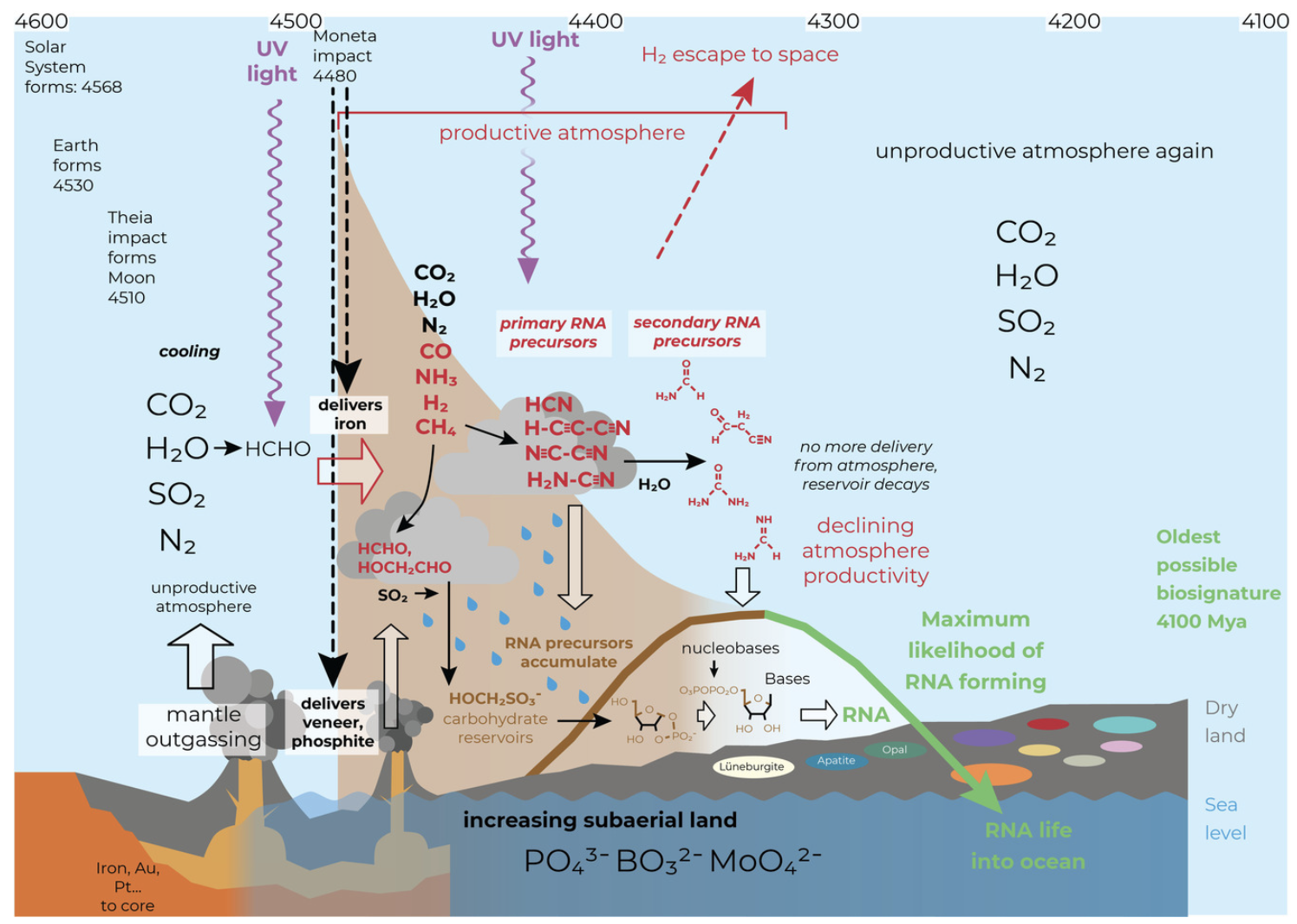 Benner, S.A., Bell, E.A., Biondi, E., Brasser, R., Carell, T., Kim, H.J., Mojzsis, S.J., Omran, A., Pasek, M.A. and Trail, D., 2020. When did life likely emerge on Earth in an RNA‐first process?. ChemSystemsChem, 2(2), p.e1900035.