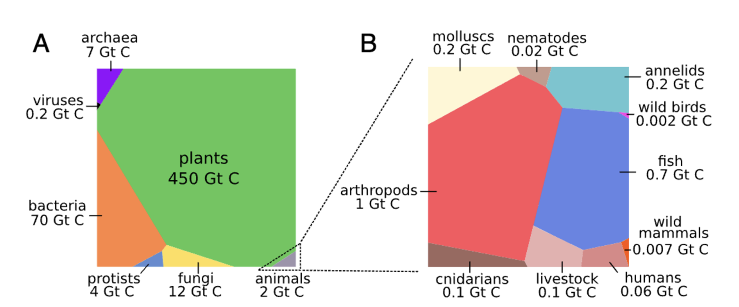 Fig. 5.47 Plants now dominate terrestrial biomass. Consequently, surface processes on Earth are always impacted by vegetation, either directly or indirectly. From Bar-on et al. (2018).#