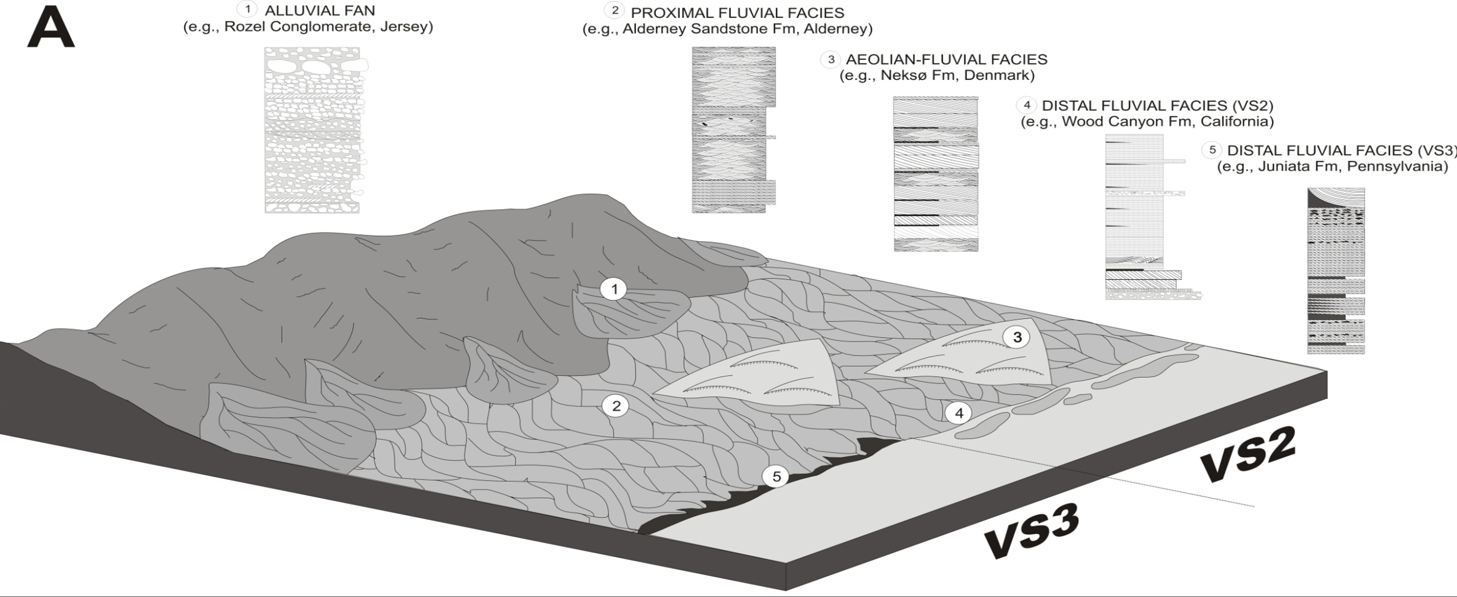 Fig. 5.49 A schematic of a planet’s sedimentary landscape without life. From Davies et al. (2011).#