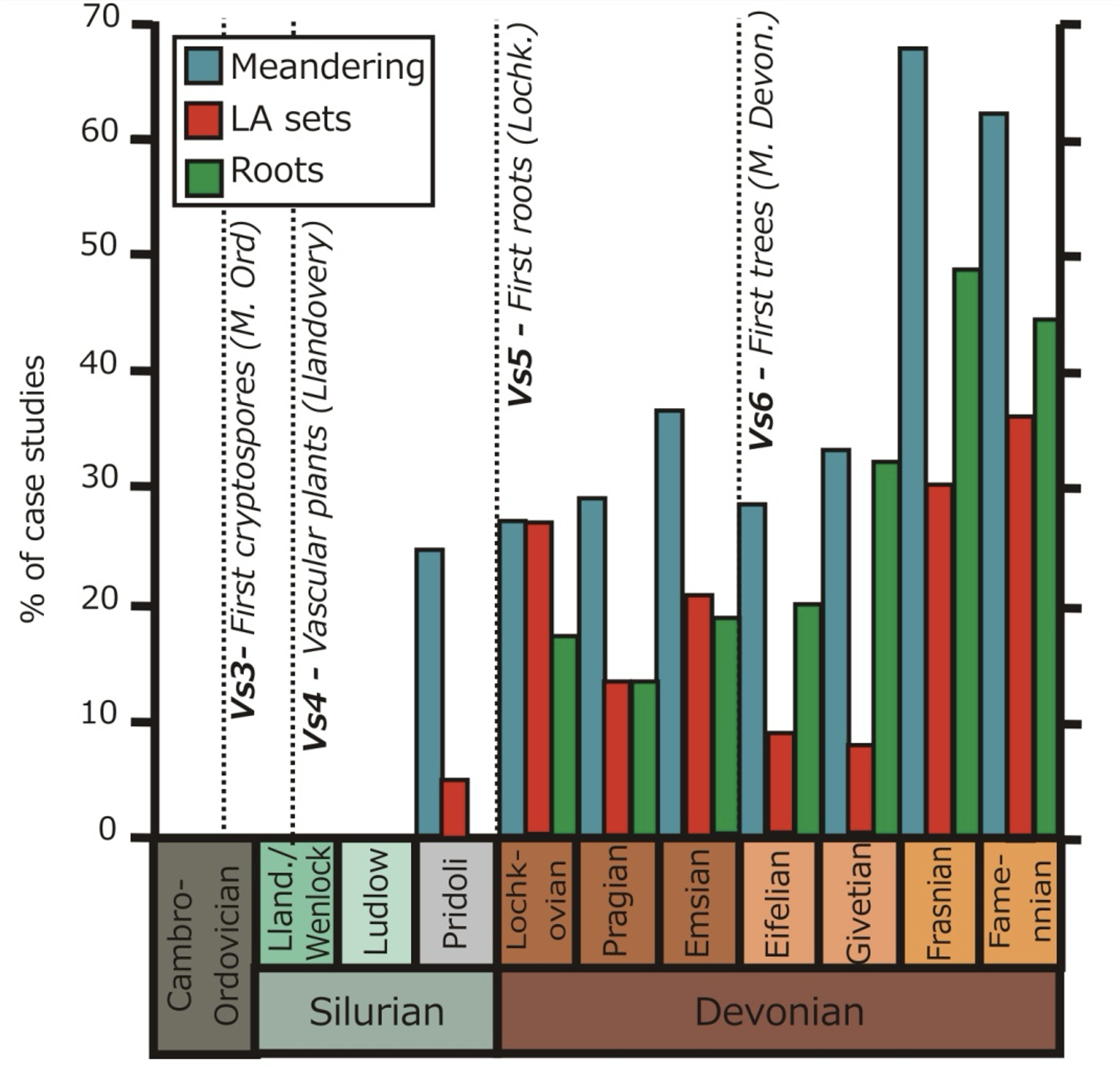 Increase in Lateral Accretion Sets following the evolution of land plants