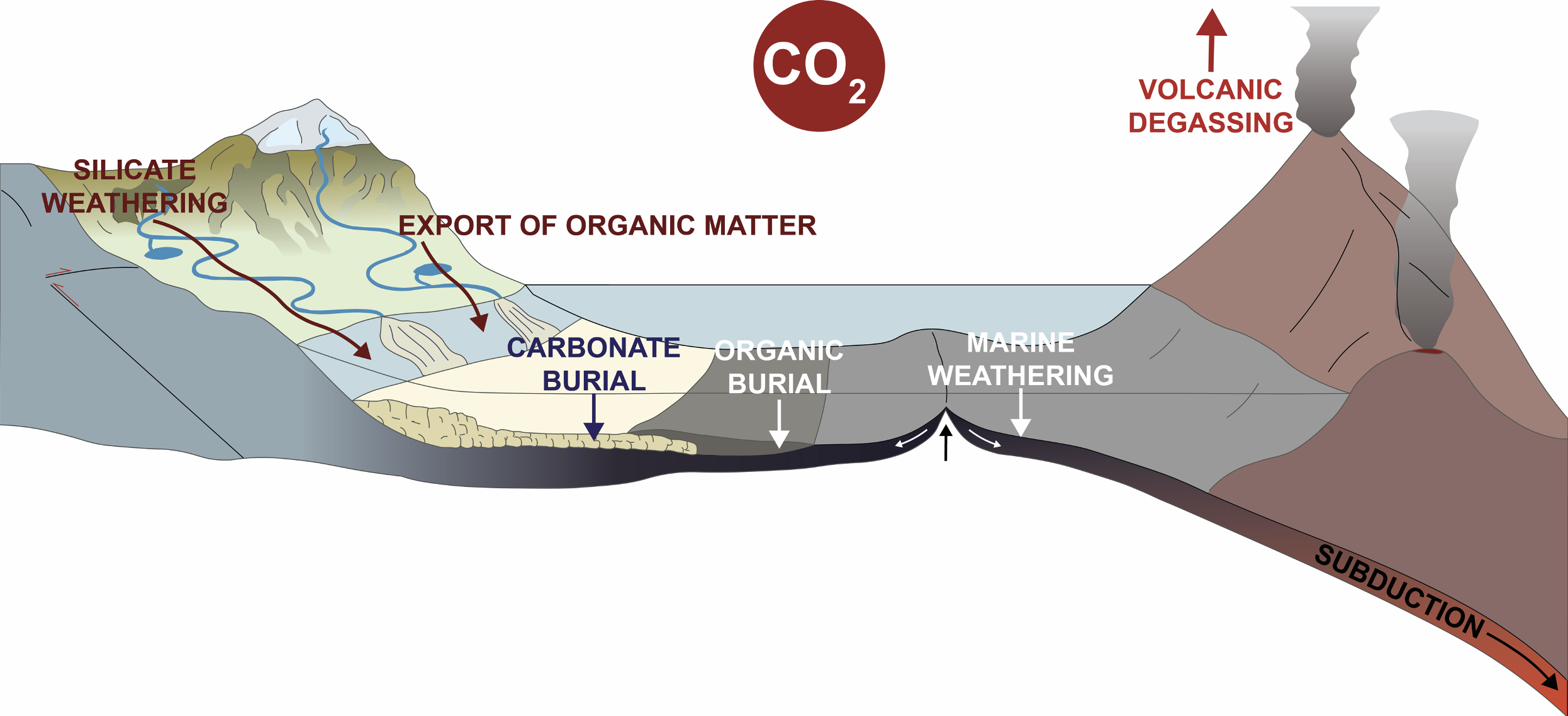 Plants alter the terrestrial silicate weathering feedback – one of the dominant cycles which regulates temperature on Earth. The basic idea of this feedback is that any increases in CO\(_2\) lead to increased surface temperatures, acceleration of the hydrological cycle, and larger fluxes of silicate chemical weathering, which in turn lead to greater CO\(_2\) removal from the ocean-atmosphere system through continental weathering.