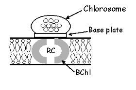 Green sulphur bacteria - restricted to anaerobic environments, and are obligately phototrophic. Some are adapted to high temperatures and salinity. Green sulphur bacteria use bacteriochlorophyll c, d and e, which form large light harvesting complexes known as chlorosomes. The reaction centre contains a dimer at the core, and LOOKS LIKE PSI from higher plants.