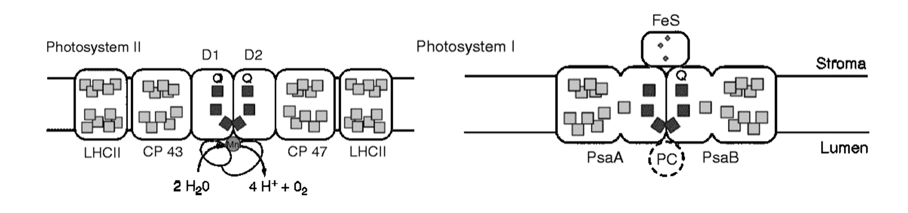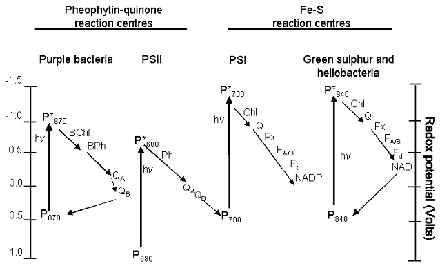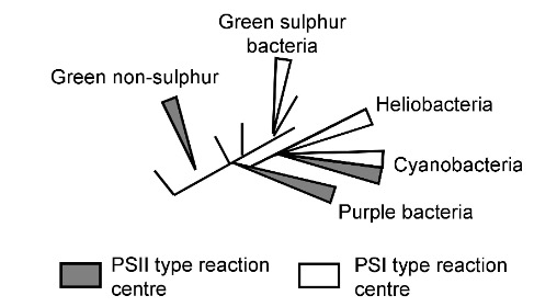 So, the different types of prokaryotes have different LHCs and different reaction centres, but the reaction centres fall into only two groups - they either resemble PSI or PSII of higher plants.