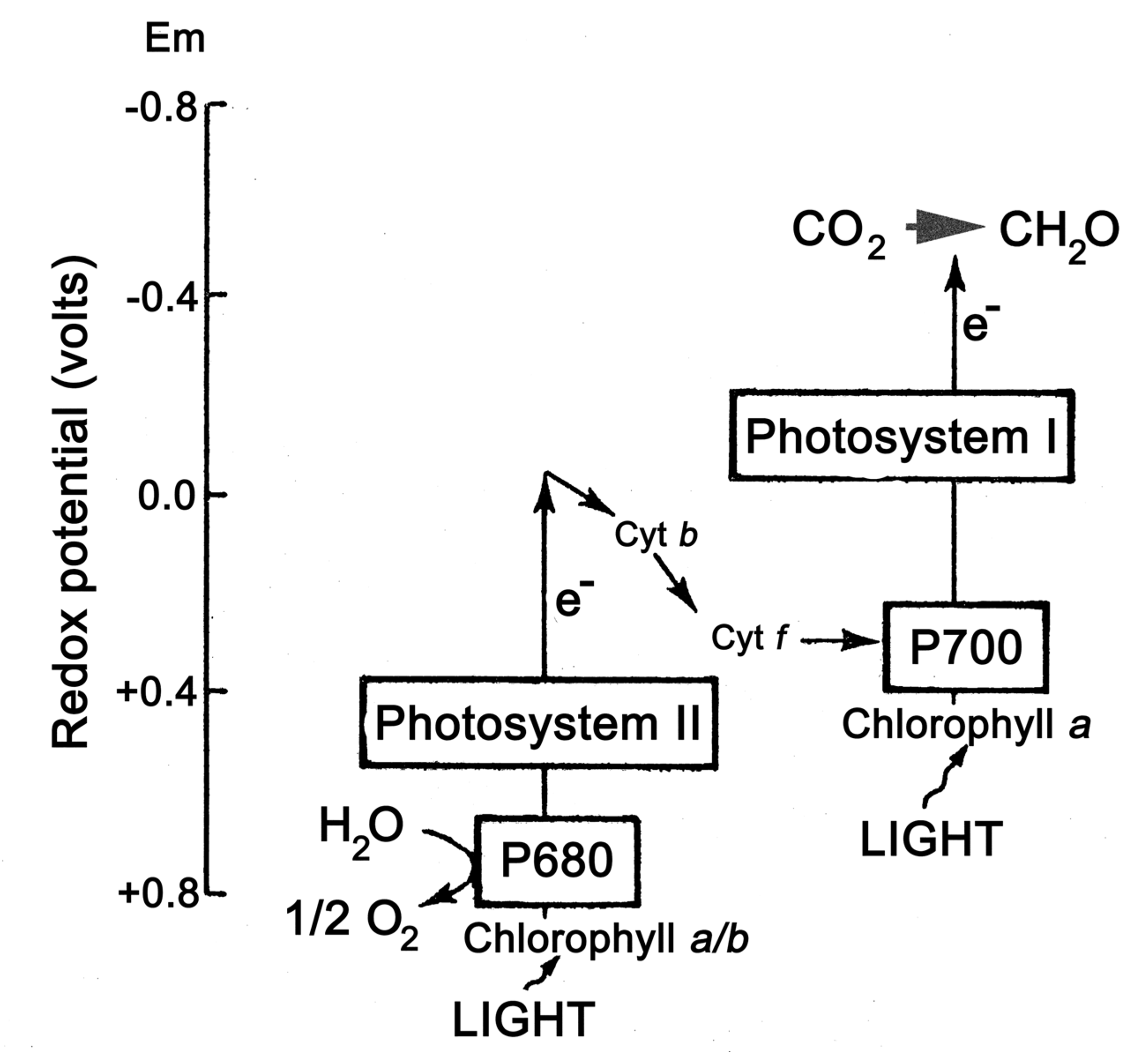 The apparatus used for oxygenic photosynthesis is intricate. There are two linked photosystems embedded in membrane